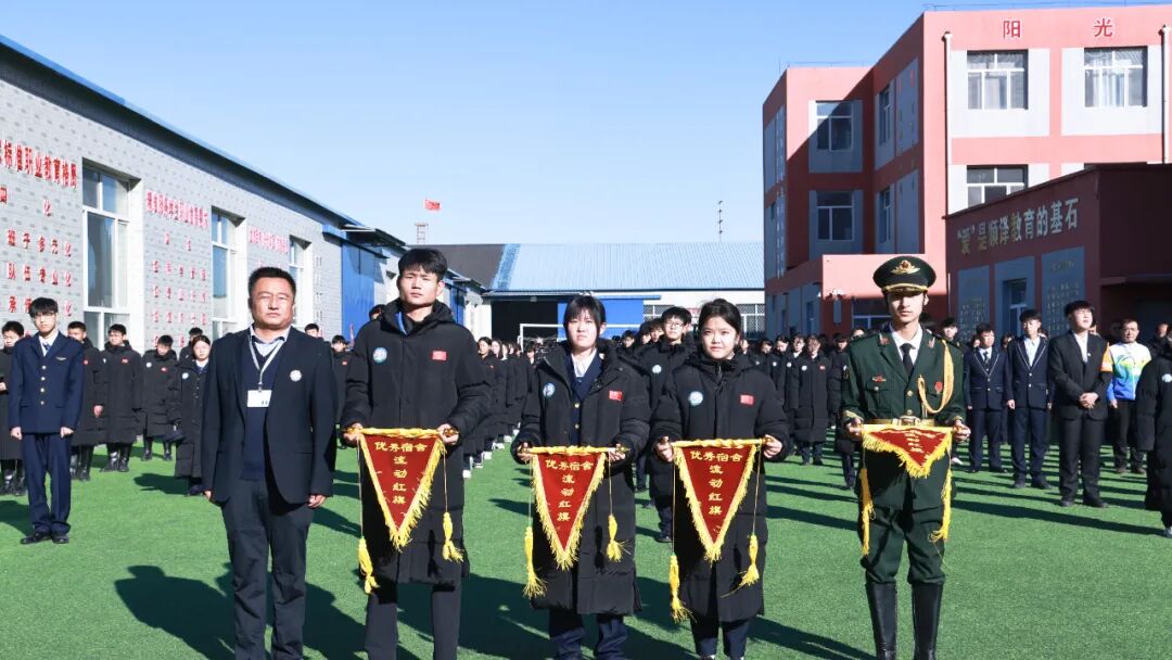 升旗仪式后,表彰了上周文明班级和优秀宿舍。